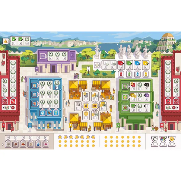 À chaque tour, choisissez avec soin un dé dans la boîte Forum pour choisir l'axe de développement que vous souhaitez privilégier. Tous les joueurs agissent en simultané, avec les mêmes opportunités, c’est donc votre stratégie qui fera la différence.