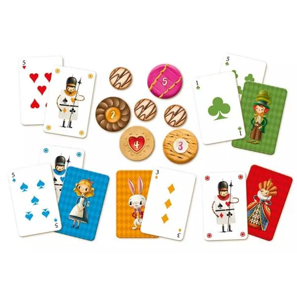 Dans ce jeu inspiré des aventures d’Alice au Pays des Merveilles, incarnez un personnage emblématique et tentez de collecter un maximum de biscuits avant la fin du temps imparti. Progressez sur le plateau tout en évitant les pièges du terrier du lapin et en profitant des effets spéciaux des cases pour devancer vos adversaires. Le joueur qui aura accumulé le plus de points grâce aux biscuits remportera la partie !