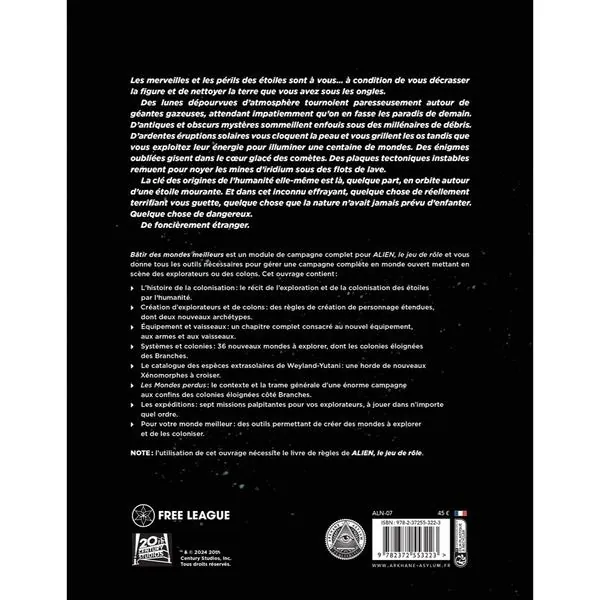 Bâtir des mondes meilleurs est un module de campagne complet pour ALIEN, le jeu de rôle. Il vous donne tous les outils nécessaires pour gérer une campagne complète en monde ouvert mettant en scène des explorateurs ou des colons.