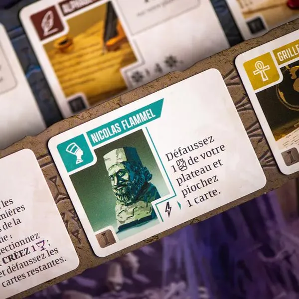 En effet : à chaque tour les monuments sont décalés d’un emplacement, de sorte à ce que celui qui est le plus proche du bord du plateau tombe alors dans le déclin. Tous les points de savoir encore présents sur le monument tomberont alors dans l’oubli et deviendront des points négatifs en fin de partie. La plupart des cartes, heureusement, possèdent des effets qui, une fois combinés, permettent d’archiver du Savoir. Il faut donc créer un moteur efficace pour optimiser la phase de déclin et perdre le moins de savoir possible.