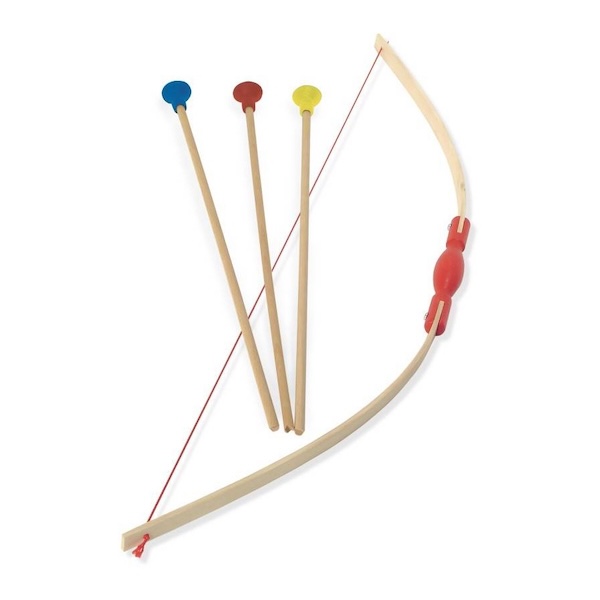 Un bel arc en bois avec ses 3 flèches à ventouse pour jouer en intérieur comme en extérieur, sans se blesser !