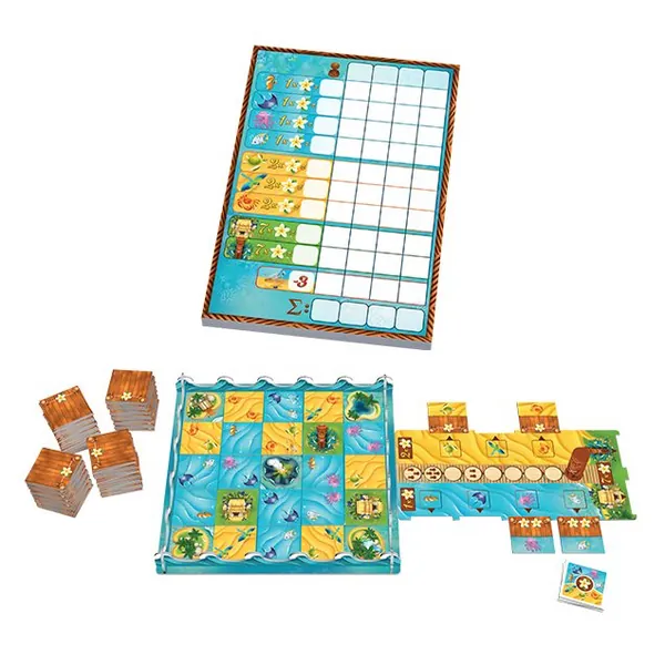 Utilisez vos pagaies pour choisir les tuiles les plus avantageuses. Placez des fleurs pour valoriser les éléments qui vous intéressent. Et ajustez votre stratégie, car les valeurs des animaux et des édifices ne cessent d’évoluer ! Pour remporter la victoire, veillez à préserver les éléments qui rapporteront le plus de points. Un jeu original, accessible et riche en stratégies.