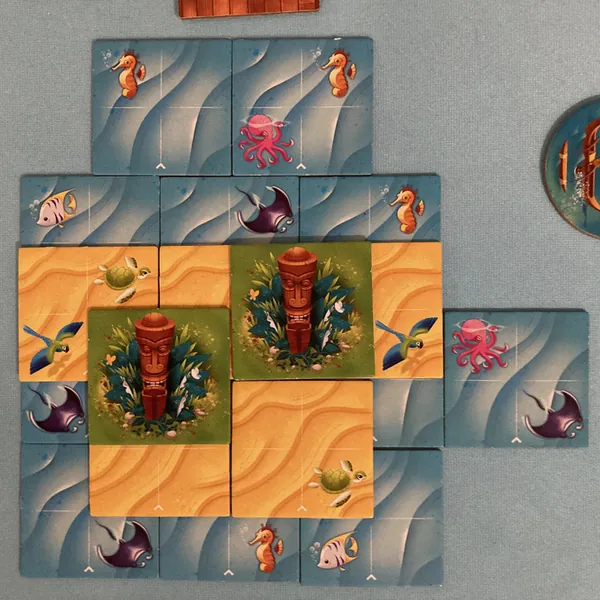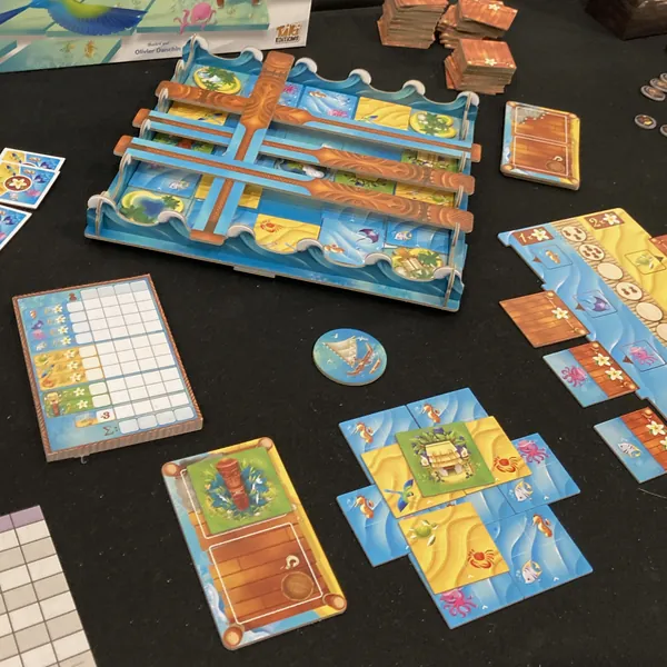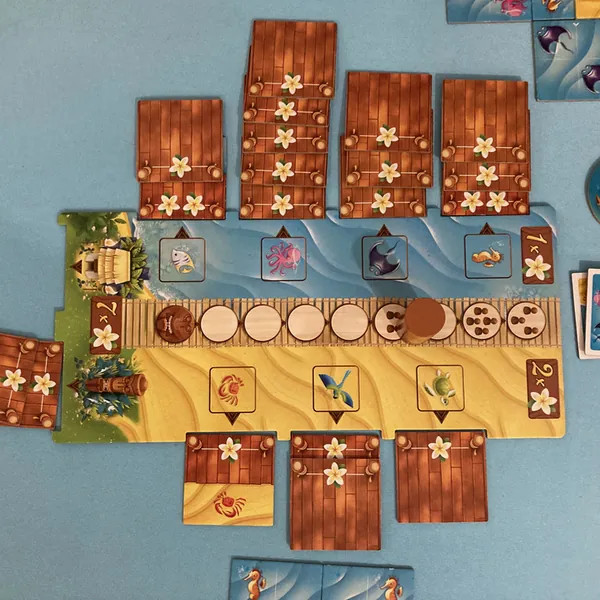 Archipels, c’est aussi un véritable rayon de soleil au quotidien. La mer s’invite à table et l’on prend plaisir à modeler ses plages pour y placer Huttes et Tiki. Que ce soit en duel ou en groupe, le jeu trouve parfaitement sa place.