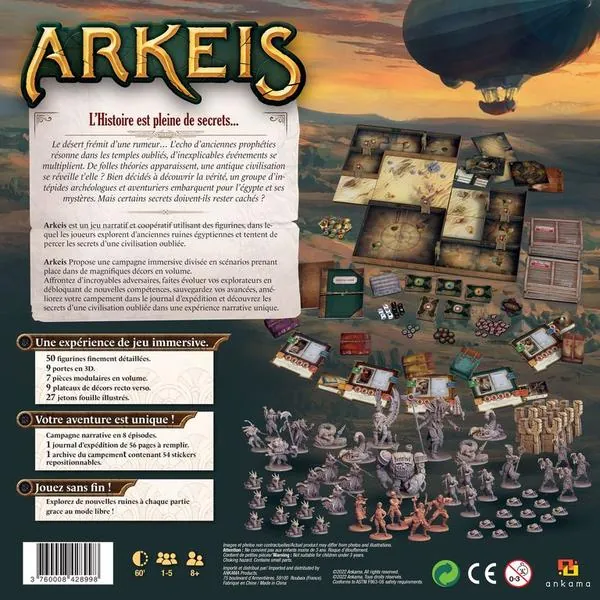Arkeis est un jeu narratif et coopératif utilisant des figurines, dans lequel les joueurs explorent d’anciennes ruines égyptiennes.