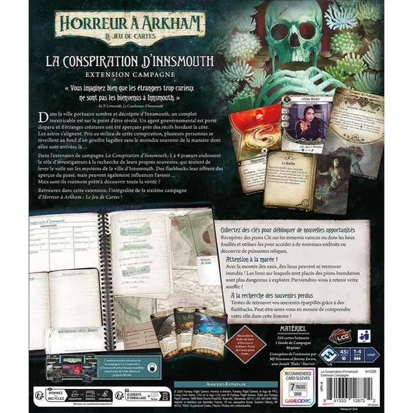 La Conspiration d’Innsmouth, est une campagne d’Horreur à Arkham : le Jeu de Cartes. Un à 4 joueurs endossent le rôle d’investigateurs à la recherche de leurs propres souvenirs, qui tentent de lever le voile sur les mystères de la ville d’Innsmouth. Des flashbacks leur offrent des aperçus du passé, mais peuvent également influencer l’avenir…Mais sont-ils vraiment prêts à découvrir toute la vérité ?