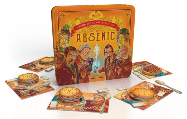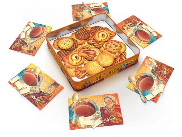 Arsenic est un jeu familial, pour 1 à 6 joueurs, à partir de 7 ans et proposant des parties d'environ 15 minutes. Ce party-game teinté de réflexion, de bluff, de stratégie et d'un soupçon de chance est basé sur le principe du stop-ou-encore. Les joueurs doivent rivaliser d'audace et de sang froid pour s'arrêter avant qu’il ne soit trop tard. Une bonne analyse statistique des biscuits restants et de leur dangerosité potentielle peuvent vous permettre de tirer votre épingle du jeu... Mais ces chiffres rassurants sont malheureusement souvent faussés par la perfidie sans bornes de vos adversaires. Soyez prudent car parfois, il en faut vraiment peu pour se faire piéger et passer de vie à trépas.
