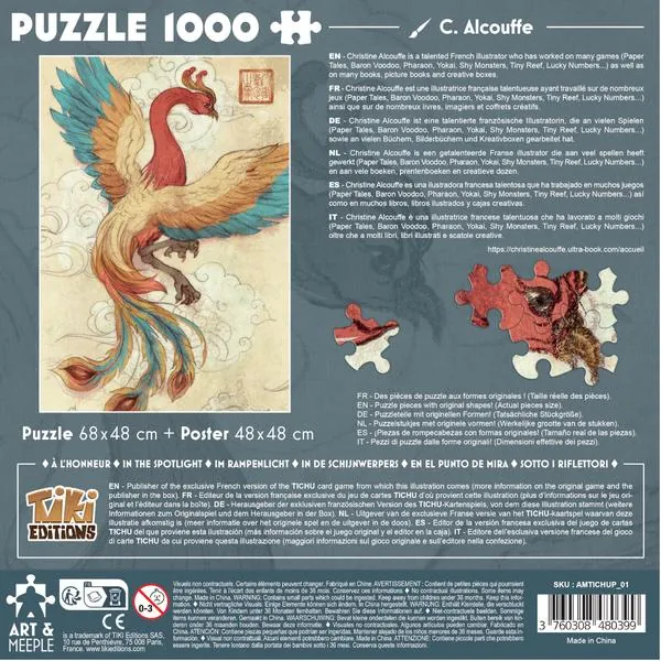 Puzzle 1000 pièces à l’effigie du jeu Tichu de l’éditeur Tiki Editions, plus précisément du superbe Phénix !