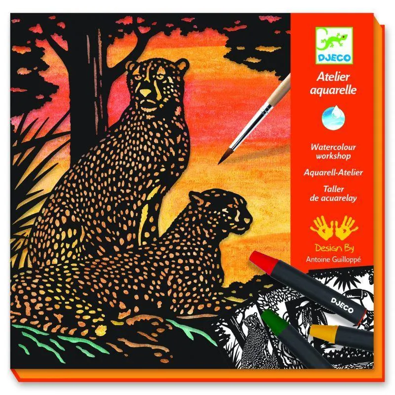 Contenu du coffret : 4 cartes avec dentelle, 12 crayons aquarelle, un pinceau et 1 livret explicatif.