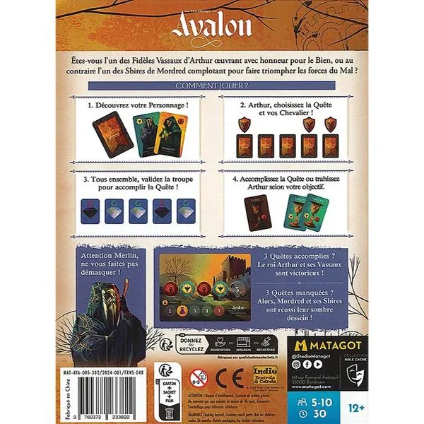 Les joueurs peuvent être des serviteurs Loyaux d’Arthur qui se battent pour le Bien et l’honneur, ou des laquais de Mordred œuvrant pour le Mal.