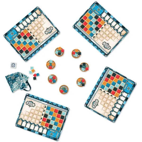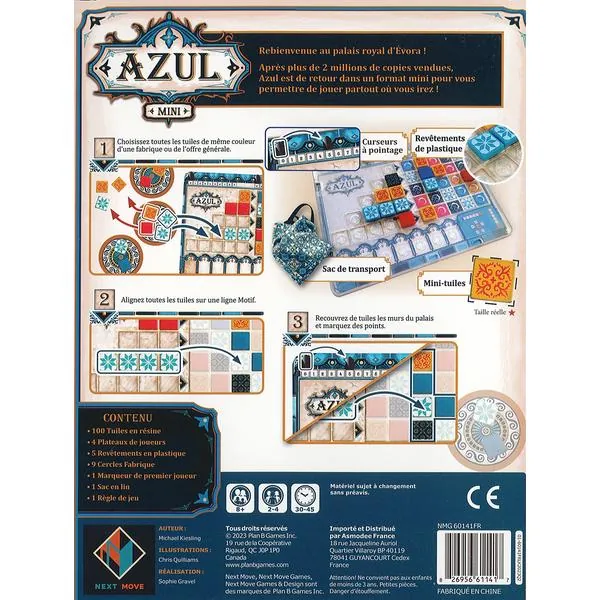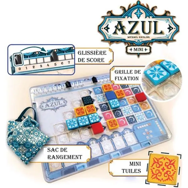 Une version voyage d’Azul à emmener partout, avec des plateaux prévus pour que les tuiles ne glissent pas et que tout tienne dans un espace restreint !