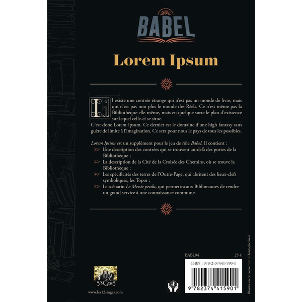 Ce supplément décrit Lorem Ipsum le plan d’existence sur lequel se trouve la bibliothèque.