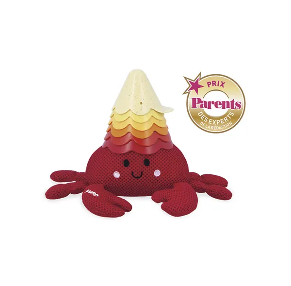 Voici le mignon et joyeux bernard-l’hermite, composé d’une éponge de bain et de 6 coupelles colorées.