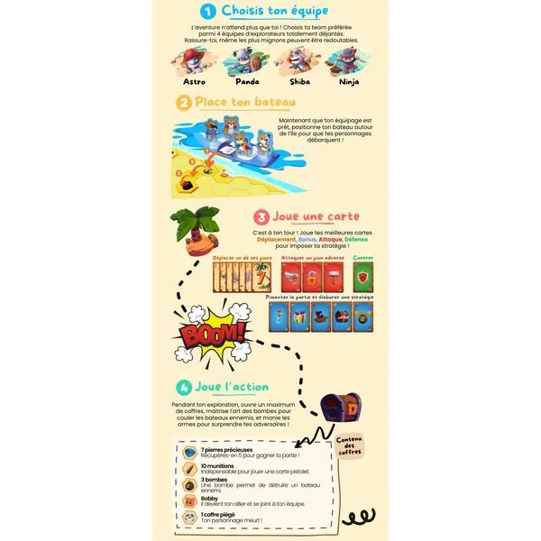 Embarque pour une aventure explosive mêlant chasse au trésor et battle royale : explore, survis et gagne pour devenir le maître de Bomb Island ! Un jeu compétitif amusant pour toute la famille, avec de la stratégie, mais pas trop !