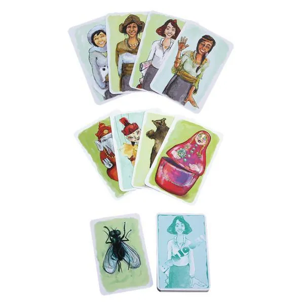 On retourne une de ses cartes, tout le monde salue rapidement et… sans se tromper ? Pas si simple d’être poli ! « Bonjour Simone ! », « Ugh » Tanka, « Namasté » Chamze , et pour Sakari on se touche le bout du nez. Et une mouche on tape. Ouh la la, ça va vite, on s’emmêle, on finit par saluer une poupée russe et tout le monde se bidonne.