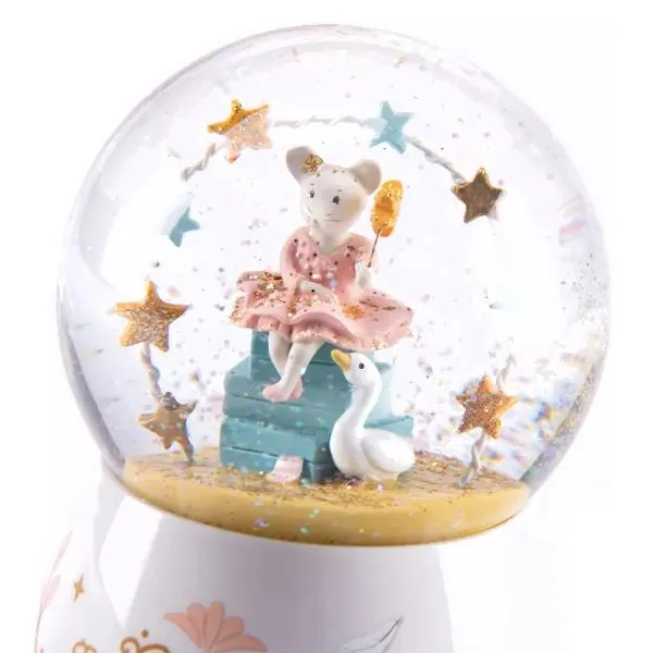 La boule à neige musicale avec la petite souris et son oie qui font la fête au milieu des paillettes holographiques fera rêver les petits comme les grands !