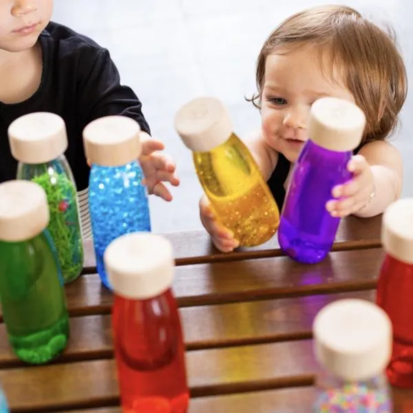 Les bouteilles sensorielles sont un véritable spectacle pour les petits, elles les accompagnent dans l'aventure du développement et à chaque étape de leur croissance en stimulant leur sens de la vue, de l'ouïe et du toucher tout en respectant le rythme de chaque enfant.
