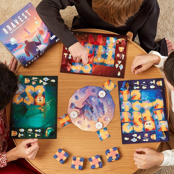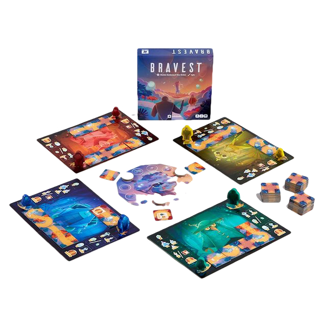 Derrière son apparence un peu enfantine, Bravest nous cache un jeu de pose de tuiles ingénieusement " drafté " par à un système original qui donne à tous les joueurs une vue d'ensemble sur les tuiles mises en jeu.