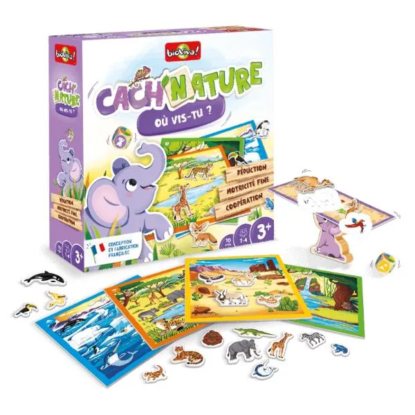 Comment jouer ? Les joueurs lancent le dé et placent les animaux dans leurs milieux de vie (parmi les quatre milieux de vie présentés dans le jeu : neige et glace, savane, désert, jungle). Attention, chaque animal mal placé est déposé sur la planchette à bascule. Si elle reste en équilibre jusqu’à la fin, les enfants remportent la partie !