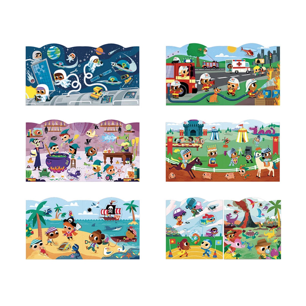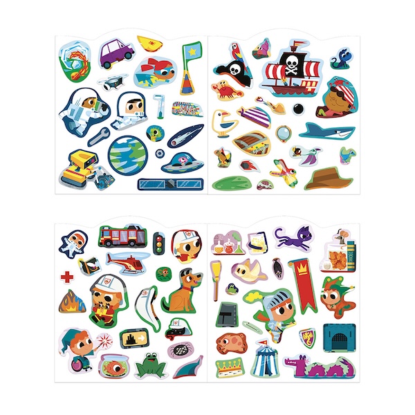 Pirates, astronautes, pompiers, super-héros… chaque scène invite à inventer des histoires pleines d’action et de rebondissements !