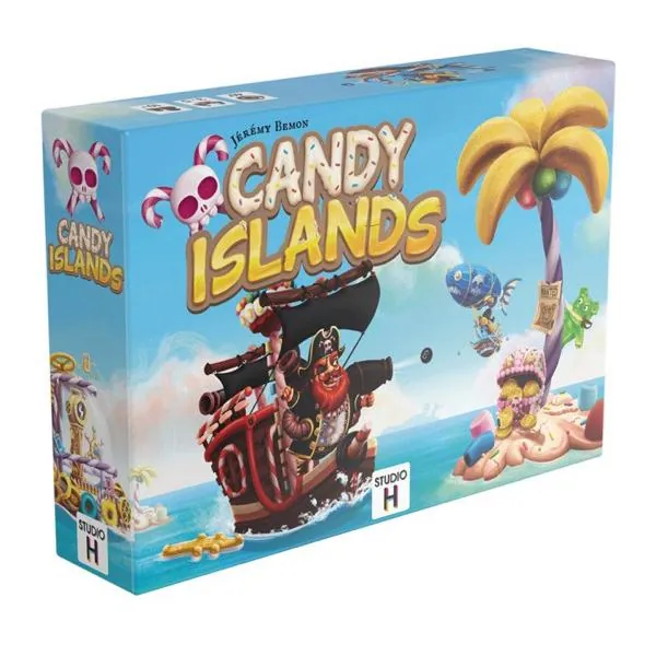 Candy Islands est un jeu d’enchères malin, sournois et dynamique dans un univers original et coloré ! Des cartes Trésors sont posées sur les îles entre chaque joueur. Les tours sont simultanés : les joueurs misent secrètement dans chaque main des Boulets de Bonbons et/ou des Mercenaires aux pouvoirs spéciaux. Ils les révèlent et comparent avec leurs deux voisins. Celui qui a misé le plus remporte le Trésor, et les bonbons misés sont échangés entre les joueurs !
