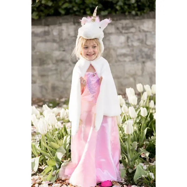 La belle cape Licorne présente un extérieur luxueusement doux et moelleux avec une belle crinière de licorne rose et une corne dorée.