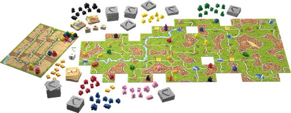 Les extensions incluses sont les suivantes : la rivière, l’abbé, Auberges & Cathédrales, Marchands & Bâtisseurs, les ornithoptères, les hérauts, les bacs, les mines d’or, Mage & sorcières, les voleurs, et les agroglyphes !