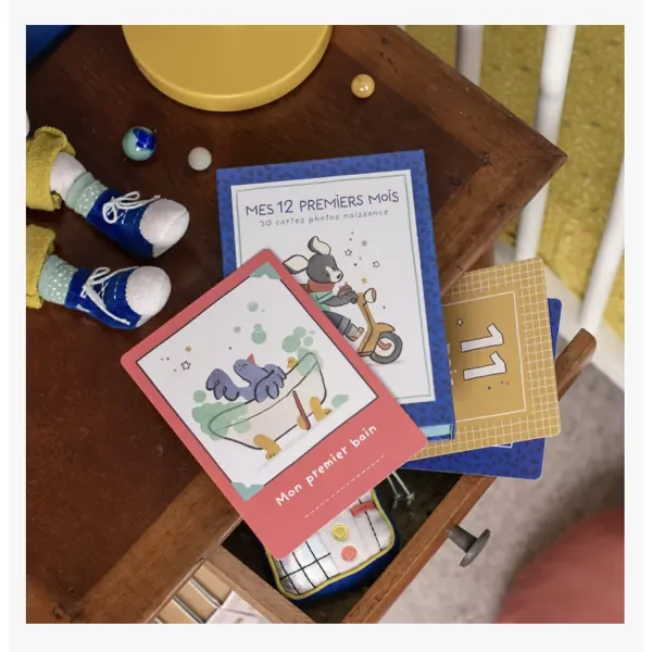 Un beau coffret de 30 cartes pour prendre en photo bébé, et retracer les grandes étapes de ses 12 premiers mois.