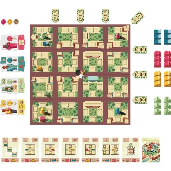 La ville est représentée par une grille 4 tuiles sur 4. Chacune comportant plusieurs parcelles constructibles à partir des intersections où se déplacera votre urbaniste. Une partie n’a pas de nombre prédéfini de tours, vous continuez à jouer jusqu’à ce que le dernier Bâtiment d’une couleur soit pris. À votre tour, vous devez décider si vous souhaitez déplacer votre Architecte puis construire, ou si vous préférez ajouter une nouvelle carte à votre Projet. Si vous avez déjà 3 cartes dans votre Projet, vous marquez les points de celle qui se trouve à l’autre extrémité de votre rangée de Projets. Une fois que vous avez effectué une des deux actions possibles, c’est au tour du joueur suivant dans le sens horaire.