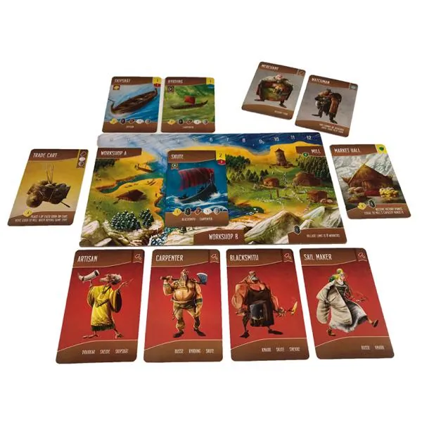 Charpentiers de la Mer du Nord se déroule dans les premières années de l'ère viking, vers 900 après JC. En tant que constructeurs navals vikings, les joueurs s'affrontent pour construire la plus grande flotte de la mer du Nord. Les joueurs doivent collecter du chêne, de la laine et du fer, ainsi que faire venir d'autres artisans à bord pour les aider. L'or est une denrée précieuse et doit être dépensé avec sagesse. Comme vous vous en doutez, le canton est rempli d'un éventail de personnages, du mauvais au pire, en espérant qu'ils seront vos alliés !