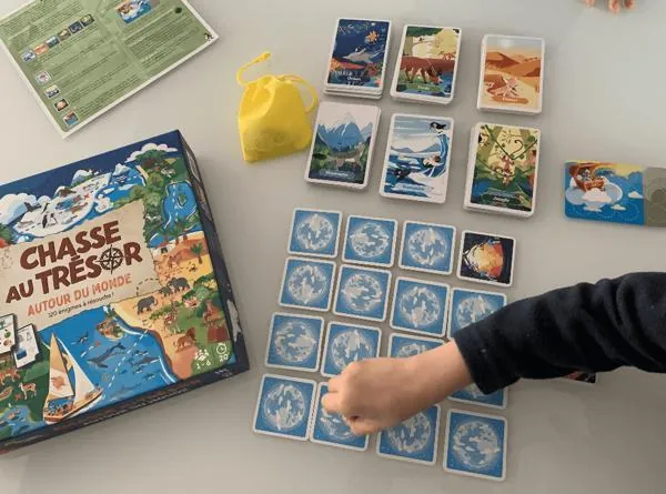 Ainsi, on apprendra beaucoup sur les milieux naturels, les animaux et la biodiversité. Ce jeu coopératif se compose de 120 cartes avec encre magique (on frotte son doigt pour faire apparaître la solution), d'un parcours de jeu composé de 19 cases, d'une carte trésor, de 20 jetons de trésors ou d'objets polluants et de 2 pions aventuriers.