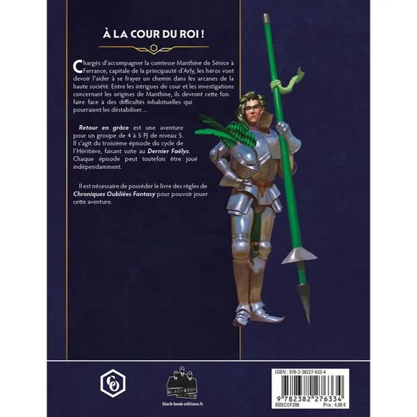 Retour en grâce est une aventure pour un groupe de 4 à 5 PJ de niveau 5. Il s’agit du troisième épisode du Cycle de l’Héritière (avec Les Entraves du Destin, Le Dernier Faëlys et Mortelle Xélys) . Chaque épisode peut toutefois être joué indépendamment. .