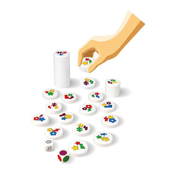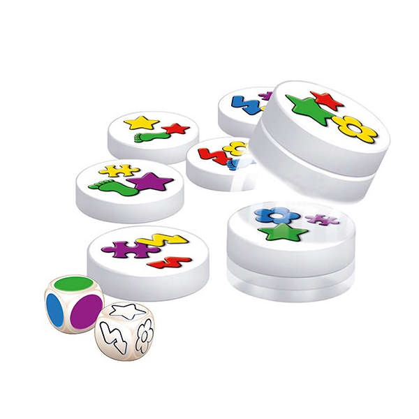 A chaque tour, on lance 2 dés qui indiquent quel symbole trouver et dans quelle couleur. Puis tous les joueurs tentent simultanément de s’emparer d’un maximum de disques reproduisant cette combinaison.