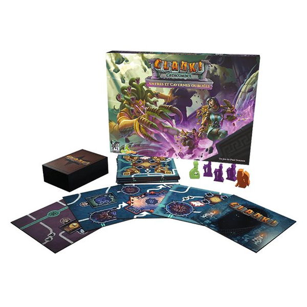Cette extension pour Clank! Catacombes ajoute 12 tuiles, 50 cartes et 3 monstres aux Catacombes.