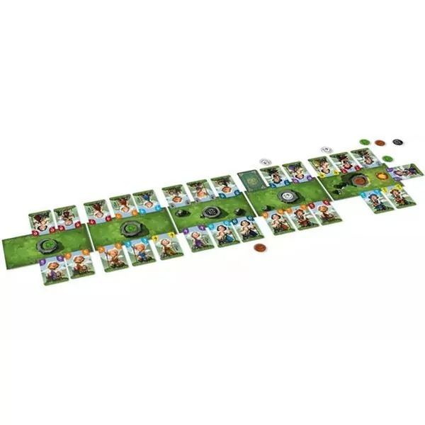 Après la mise en place du jeu, chaque joueur reçoit un certain nombre de cartes (selon le nombre de joueurs) et 5 boucliers en bois de sa couleur. Votre objectif est de placer vos cartes aux bons endroits tout en maximisant les opportunités de score grâce à vos boucliers.