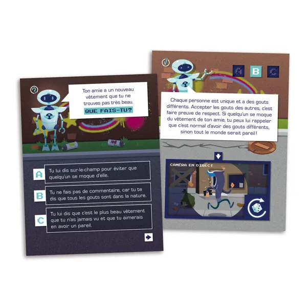 Le code social est conçu pour stimuler le développement des habiletés sociales des enfants de 6 à 10 ans. Le jeu présente des mises en situation qui les amènent à se mettre à la place des personnes pour réfléchir aux comportements appropriés qu’il est possible d’adopter dans ces situations.