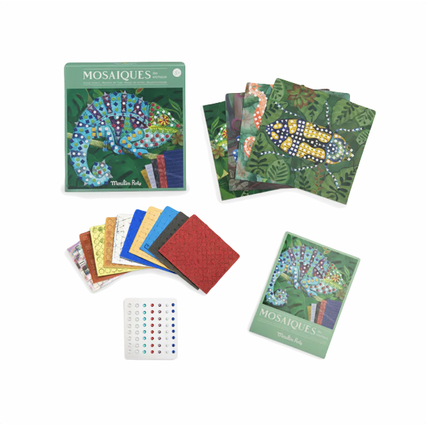 Contient : 5 cartes illustrées, 10 planches de mosaïque et 1 planche de strass