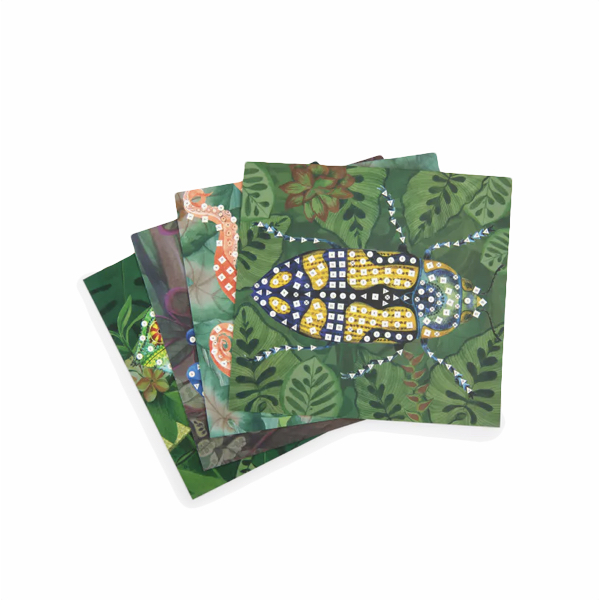 Les enfants vont décorer 5 cartes illustrées avec les mosaïques adhésives, sur le thème des animaux du monde.
