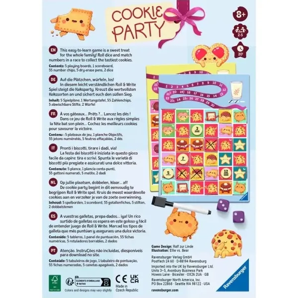 Dans Cookie Party, un roll and write gourmand et familial, vous allez devoir attraper un maximum de cookies pour remporter la partie