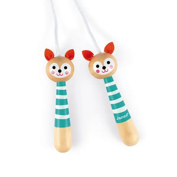 Cette jolie corde à sauter Renard en bois massif est adorable avec ses oreilles en feutrine toute douce ! Il suffit de dévisser, puis de tourner la corde dans la tête jusqu'à ce qu'elle sorte pour régler la longueur.
