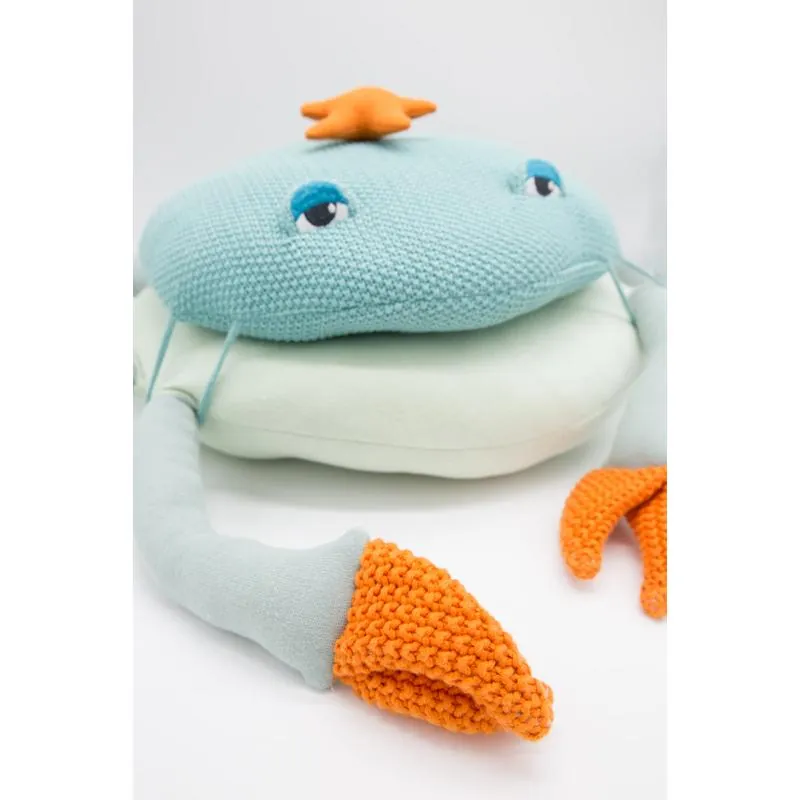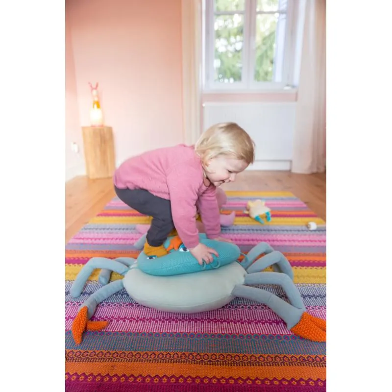 Un super grand coussin en forme de crabe sur lequel les enfants vont pouvoir s’assoir, se reposer, et en faire 2 coussins pour accueillir un copain !