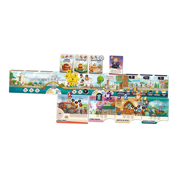 Critter Kitchen est un jeu dans lequel les joueurs décident secrètement où envoyer leurs 3 différents Chefs (travailleurs) dans le but de rassembler les meilleurs ingrédients plus rapidement que leurs concurrents. Des rumeurs circulent sur l’arrivée du Critique en ville, et vos Chefs ont la possibilité de les écouter. Jouez avec des capacités différentes pour le Critique, les Rumeurs et le Restaurateur afin de garantir une expérience différente à chaque partie !