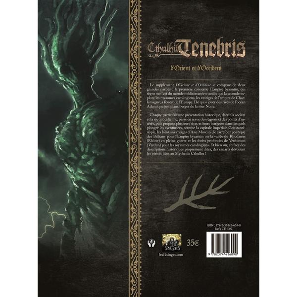 D'Orient et d'Occident est littéralement la bible de Cthulhu Tenebris. Benjamin Ott y décrit minutieusement les deux grandes puissances de l'époque, les royaumes carolingiens à l'ouest et l'empire byzantin à l'est, révélant leurs nombreux secrets liés au Mythe. De quoi jouer des rives de l'océan atlantique jusqu'aux berges de la mer noire.
