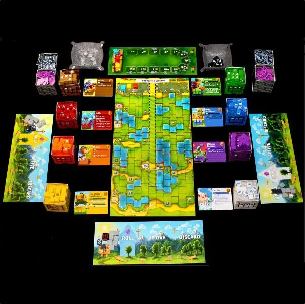 À chaque tour, vous lancez vos cubes en simultané. Essayez d'obtenir des faces de pied pour avancer sur la piste et des faces de pièce pour pouvoir acheter de meilleurs cubes ! Certains d'entre eux ont des effets (qui se renouvellent à chaque partie grâce aux sets de cartes), mais attention à ne pas les vouloir trop avidement... Chaque lancer représente un risque de trébucher ! Auquel cas, vous perdez votre tour.