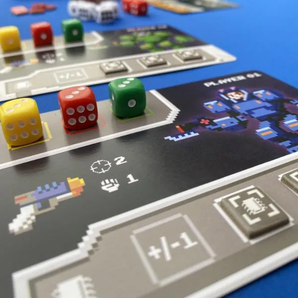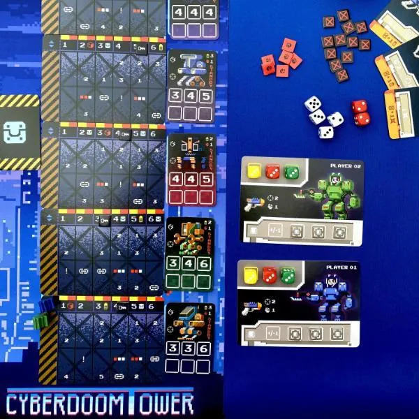 Explorez la tour Cyberdoom en déplaçant votre pièce entre les différents étages de la tour. Combattez les sentinelles qui la gardent en dépensant des PA et en lançant des dés pour déterminer vos compétences. Améliorez votre deck d'équipement pour être prêt pour le combat final. Plus vous passez de temps à collecter des codes d'accès, plus le jeu devient difficile.
