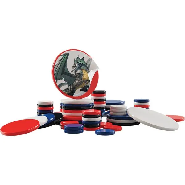 - 64 disques en plastique lestés disponibles en 3 tailles et 4 couleurs pour une flexibilité maximale dans la création des rencontres : 40 jetons de créatures de taille moyenne, 20 jetons de créatures de grande taille, 4 jetons de créatures de grande taille.