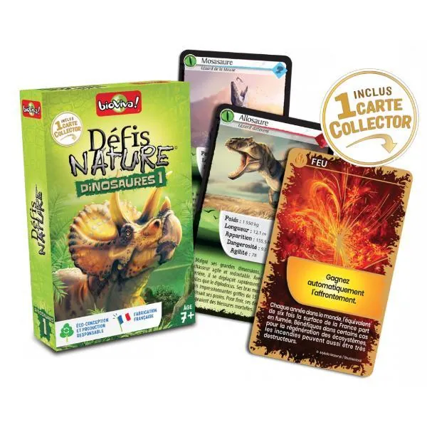 Le principe de Défis Nature - Dinosaures 1 est simple : les enfants de 7 ans et + parient sur les points forts des dinosaures. Le joueur qui possède la plus forte caractéristique remporte les cartes des autres joueurs. Le premier à collecter toutes les cartes du jeu gagne la partie.
