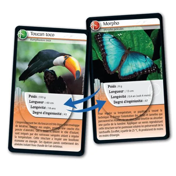 Le principe de Défis Nature - Animaux inspirants est simple : les enfants de 7 ans et + parient sur les points forts des animaux. Le joueur qui possède la plus forte caractéristique remporte les cartes des autres joueurs. Le premier à collecter toutes les cartes du jeu gagne la partie.