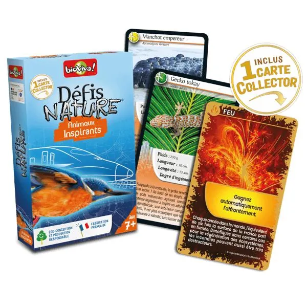 Défis Nature - Animaux inspirants vous emmène à la rencontre des animaux qui inspirent les humains pour relever les enjeux de la transition écologique ! Découvrez les espèces à préserver, puis pariez sur les points forts de vos animaux pour collecter toutes les cartes du jeu et remporter la partie. Alors, prêts à relever le défi ?