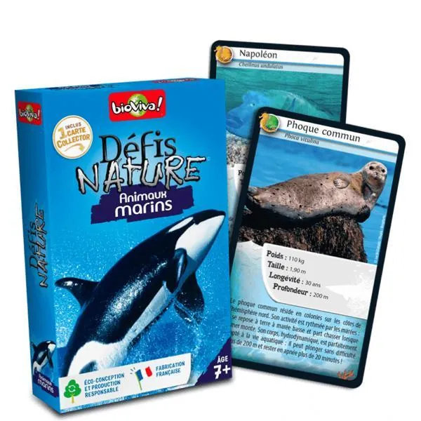 Le principe de Défis Nature - Animaux marins est simple : les enfants de 7 ans et + parient sur les points forts des animaux. Le joueur qui possède la plus forte caractéristique remporte les cartes des autres joueurs. Le premier à collecter toutes les cartes du jeu gagne la partie.