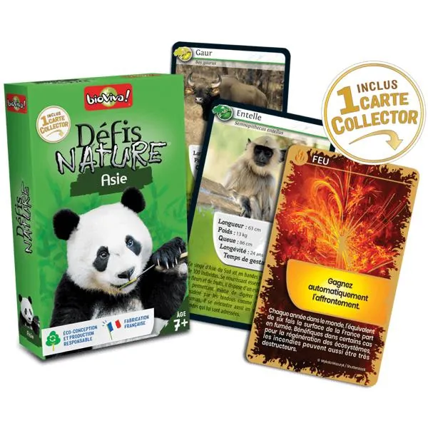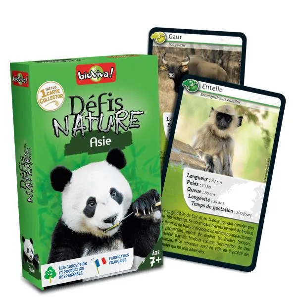 Défis Nature - Asie vous emmène à la rencontre des animaux d’Asie les plus surprenants ! Découvrez les espèces à préserver, puis pariez sur les points forts de vos animaux pour collecter toutes les cartes du jeu et remporter la partie. Alors, prêts à relever le défi ?